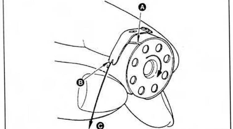 - در مرحله بعد جا انداختن ماسوره در چرخ خیاطی جک، باید بررسی کنید که هنگام کشیدن نخ (C)، ماسوره به راحتی و روان در جهت فلش مشخص شده می چرخد؛ این بررسی به شما اطمینان می دهد که ماسوره به درستی در ماکو قرار گرفته و آماده استفاده برای دوخت است.