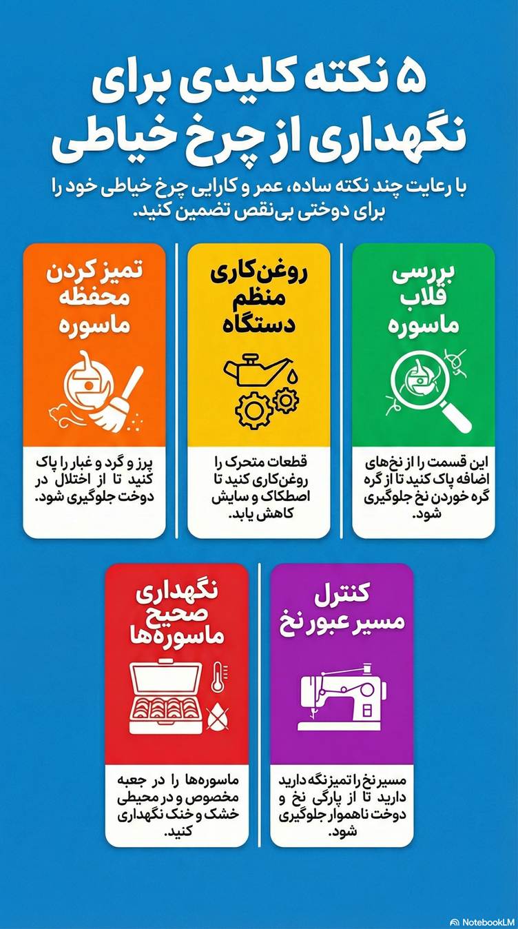 برای نگهداری از چرخ خیاطی جک و ماسوره به ۵ نکته مهم و کلیدی زیر توجه داشته باشید: